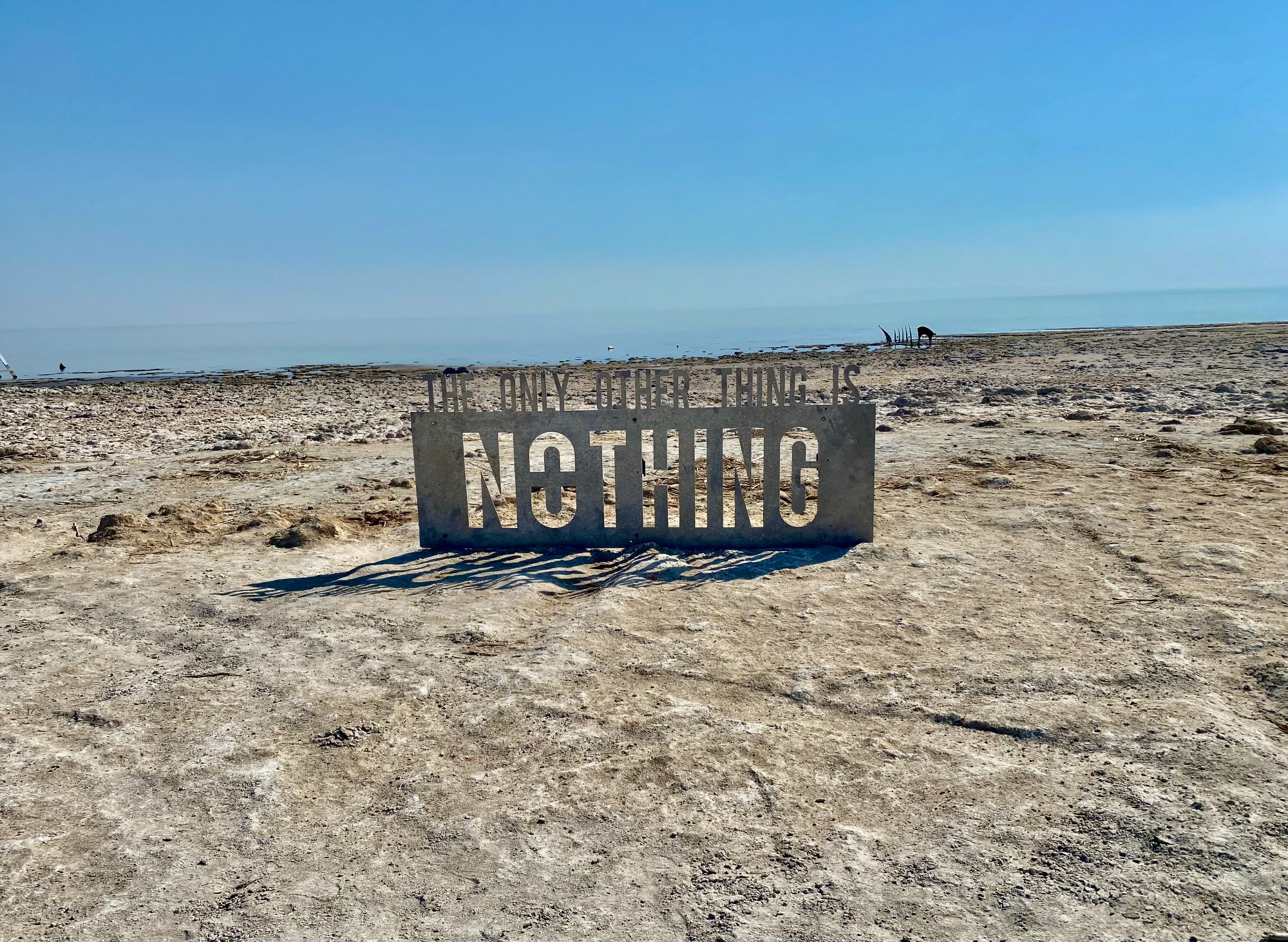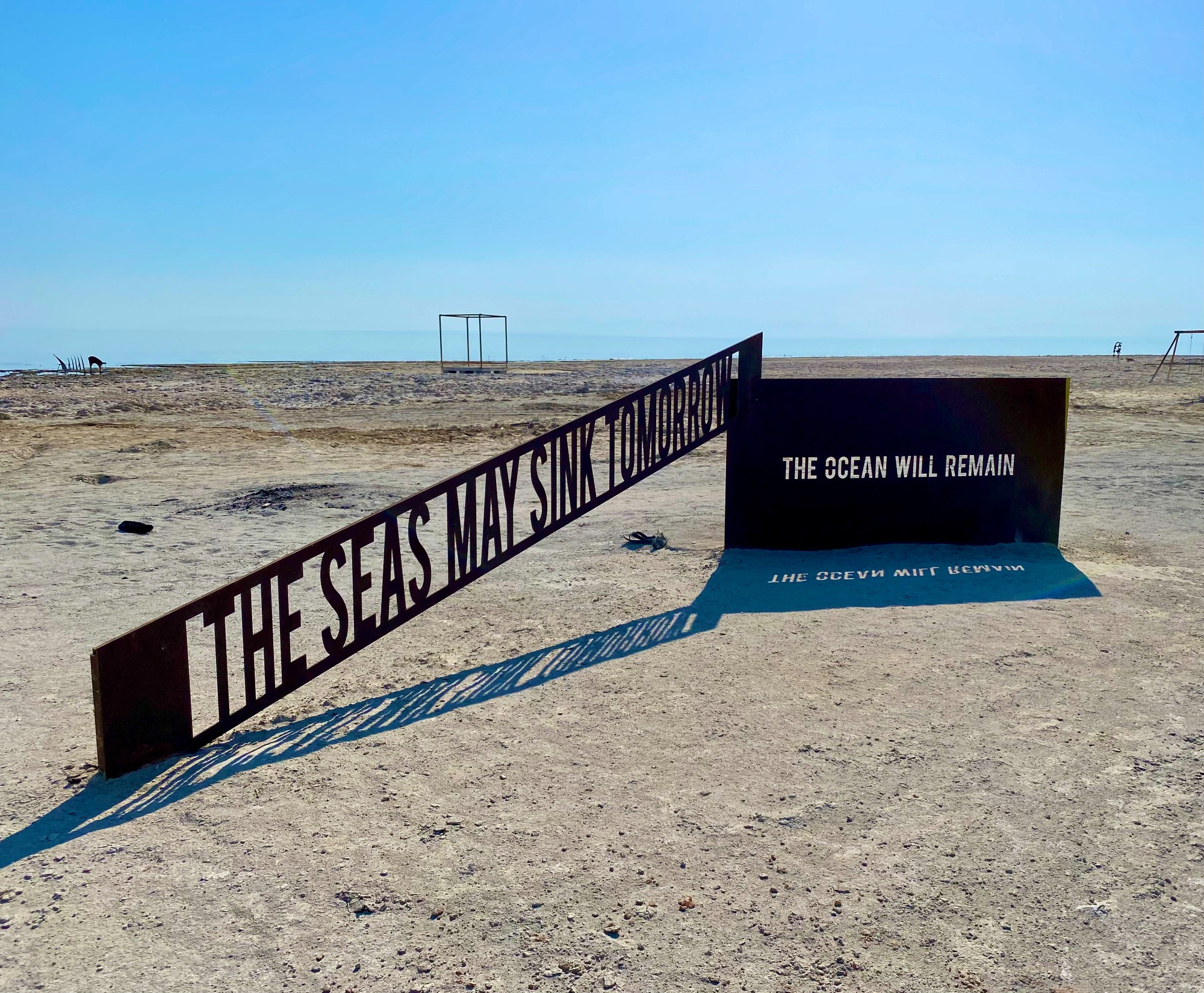 This is the other metal sculpture by Michael Birnberg, and comments on the rapidly receding shoreline at Bombay Beach.